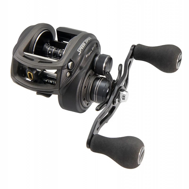 Magnetic Control System Extern einstellbares Magnetic Control System (MCS). Dies ist eine echte für die Großfischjagd. Sie haben den 95-mm-Griff für Kraft und eine satte 9,1-kg-Bremse zum Stoppen der großen Raubfische.• Einteiliger Aluminium-Rahmen und Griff-Seitenplatte • Leichte Graphit-Handschuh-Seitenplatte• Seitenplatten verfügen über SoftTouch-Gummi-Lackierung für sicheren Halt und robustes Finish • Hochfeste, massive Messing Speed Gears®, geschnitten auf präzisen Hamai CNC-Maschinen • Geflecht bereit doppelt eloxiert U-Form geschmiedetem Aluminium 35mm Spule • Premium 11-Lager-System mit doppelt abgeschirmten Edelstahl-Kugellager und Zero Reverse® Einweg-Kupplungslager • Reibungsreduzierung Titan beschichtet Zirkoniumdioxid Schnurführung • Magnetic Control System (MCS) verwendet eine externe Steuerung, um das magnetische Bremssystem einzustellen. • Doppelter eloxierter Spulenspannungsregler und geschwungener Sternwiderstand, beide mit hörbarer Klick-Einstellung • Robustes Kohlefaser-Widerstandssystem liefert bis zu 9,1kg Widerstandskraft • 95mm geschwungener, eloxierter Aluminiumgriff mit runden EVA-Knöpfen • Externer Lube Port• Gewicht 230g